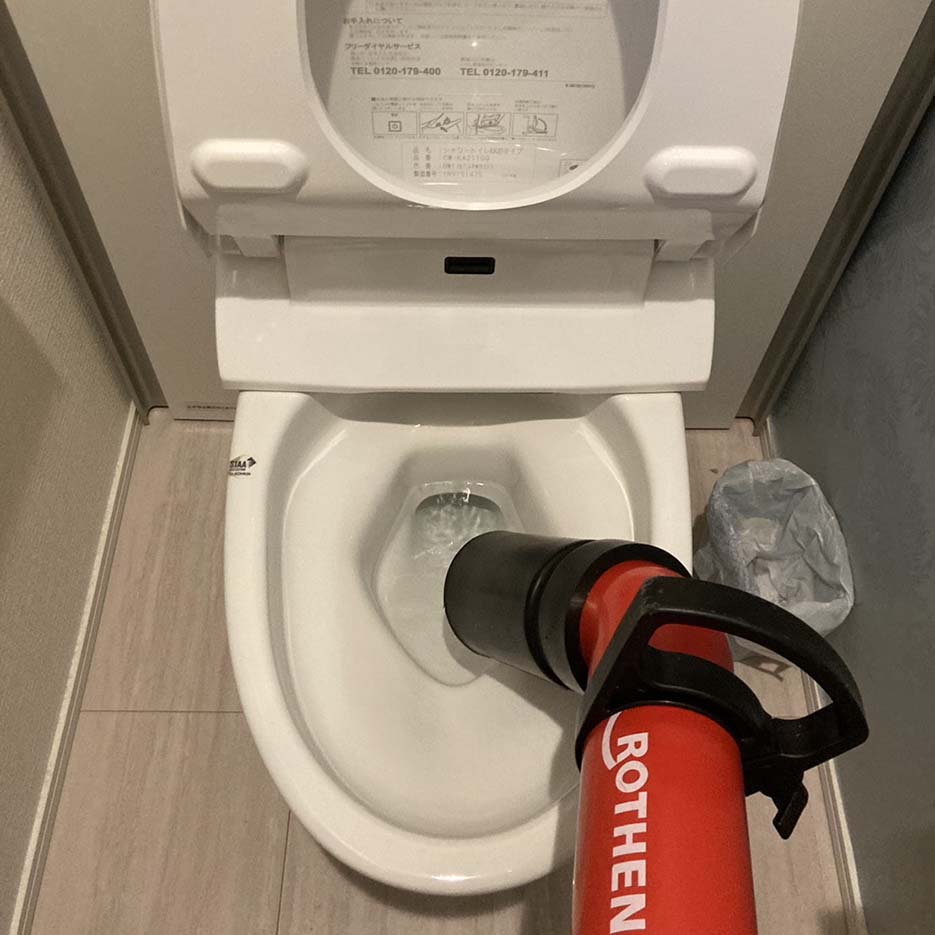 お客さまより「トイレがつまってしまっているので、流れるようにしてほしい」とご連絡をいただきました。