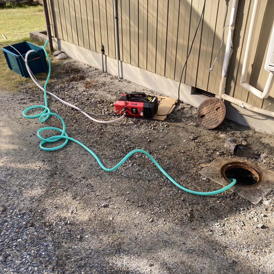 高圧洗浄機の水圧で、つまりの原因を除去。つまり解消となりました。
