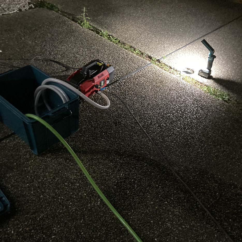 高圧洗浄機を使用して配管内を徹底的に洗浄。付着していた汚れを取り除き、排水の流れを改善しました。