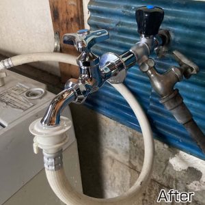 洗濯機用の蛇口取り付け【愛知県小牧市】洗濯機のトラブル 2026.03.01 <施工地域> 愛知県小牧市<ご依頼内容> お客さまより「洗濯機を新たに設置するため、蛇口を取り付けたい」とのご依頼をいただきました。<経緯> 既存の給水設備では洗濯機の設置に対応できない状況。<解決方法> 設置箇所を確認のうえ、新しい蛇口を取り付け。接続後に水漏れがないことを確認し、作業完了となりました。<修理・施工時間> 1時間